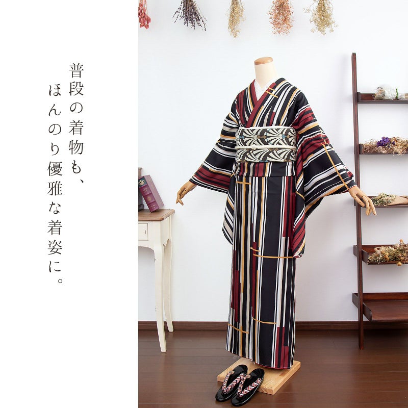 二尺袖着物 単品 「ラインカラー 黄色×薄香」 KIMONOMACHIオリジナル お仕立て上がり レディース 洗える着物 二尺袖 着物 袴に合わせて 卒業式 謝恩会に 通常丈 長着 カジュアル着物