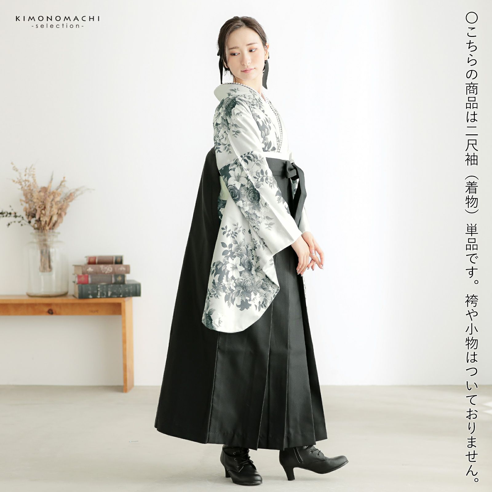 二尺袖着物 単品「ブーケ グレー」お仕立て上がり レディース 洗える着物 二尺袖 着物 袴に合わせて 卒業式 謝恩会に