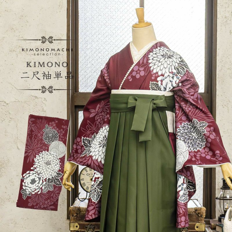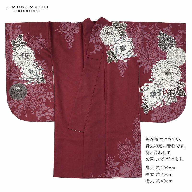 卒業式、謝恩会に 袴に合わせて華やかに 二尺袖着物 二尺袖着物 単品「ワインレッド 八重菊に手鞠」Fサイズ お仕立て上がり 短丈 ショート丈 レディース 洗える着物 二尺袖 着物 袴に合わせて 卒業式 謝恩会【メール便不可】
