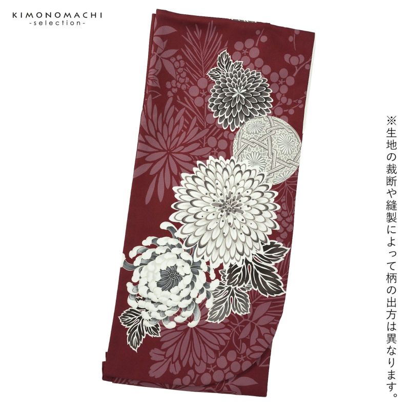 二尺袖着物 単品「ワインレッド 八重菊に手鞠」Fサイズ お仕立て上がり 短丈 ショート丈 レディース 洗える着物 二尺袖 着物 袴に合わせて 卒業式 謝恩会【メール便不可】