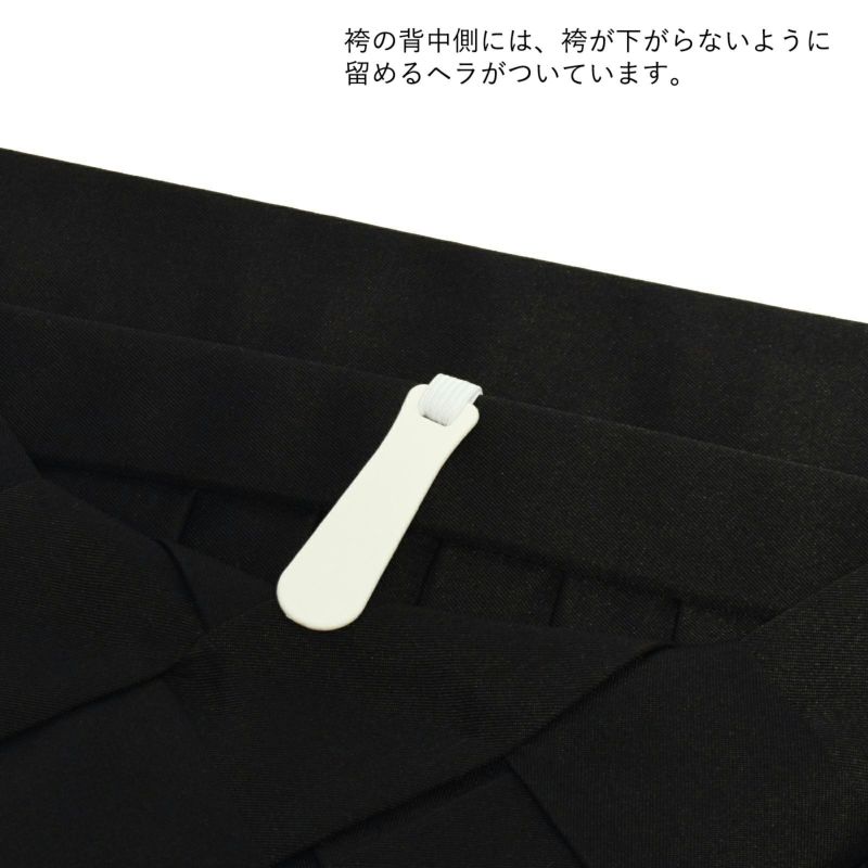 袴はシンプルな単色。行灯袴(あんどんはかま)で中仕切りのないスカートタイプ。草履はもちろん、ブーツを合わせたモダンな着こなしにも。生地はお手入れしやすいポリエステル素材です。