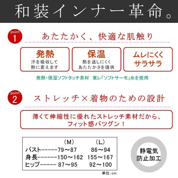 東レ ソフトサーモ糸使用 温かインナー (卒業式応援75%SALE 2/19迄)和装インナー ヒート+ふぃっと 肌着(七分丈シャツ)M/L 東レ ソフトサーモ糸使用 温かインナー<R>ss2503wkm20