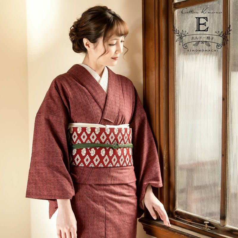 木綿はおうちで洗える気楽さ、着慣れた優しい風合いに加え、帯のデザイン次第で何通りにもコーディネートできるうれしいお洒落素材。