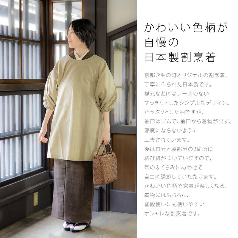 京都きもの町オリジナルの割烹着、丁寧に作られた日本製です。
