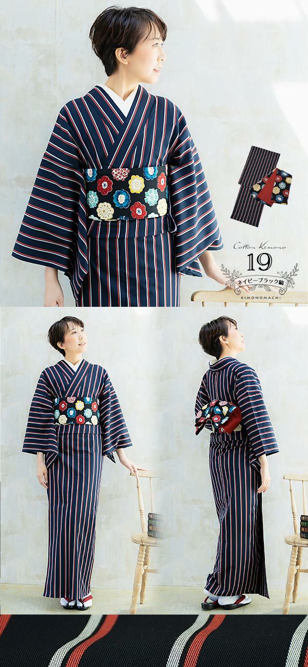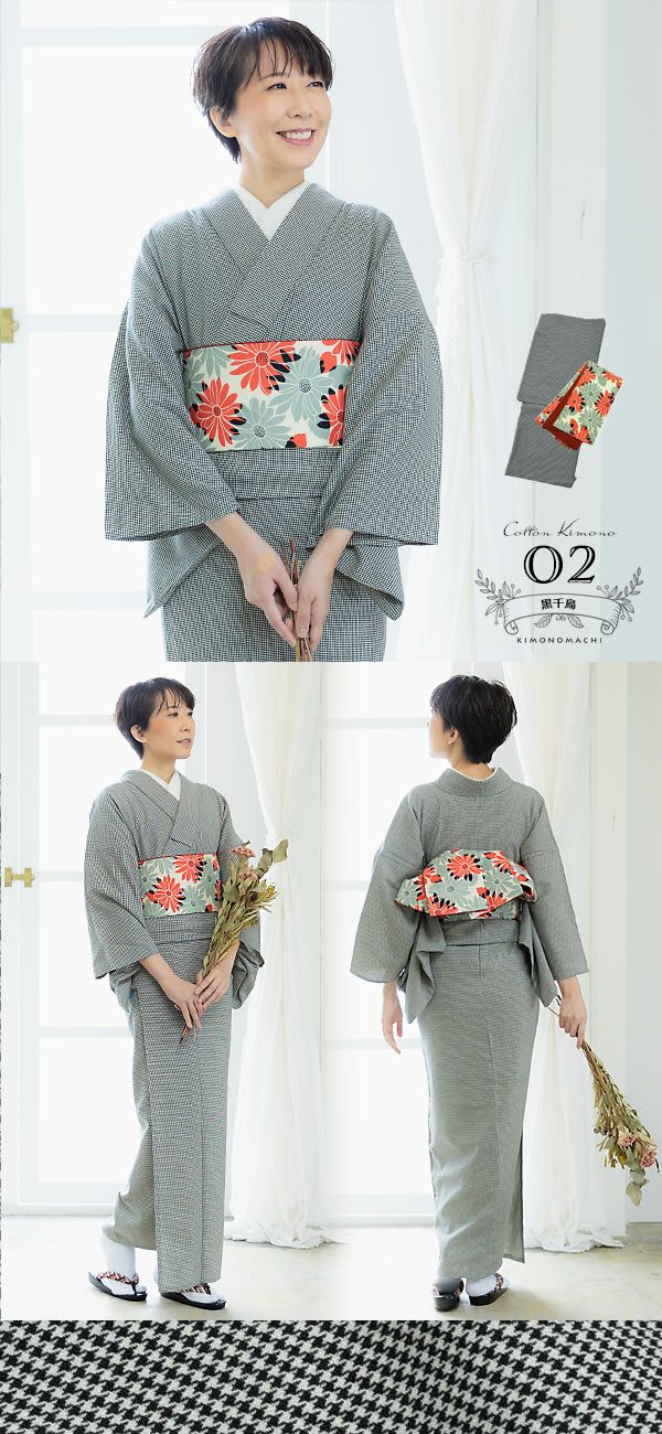 木綿はおうちで洗える気楽さ、着慣れた優しい風合いに加え、帯のデザイン次第で何通りにもコーディネートできるうれしいお洒落素材。