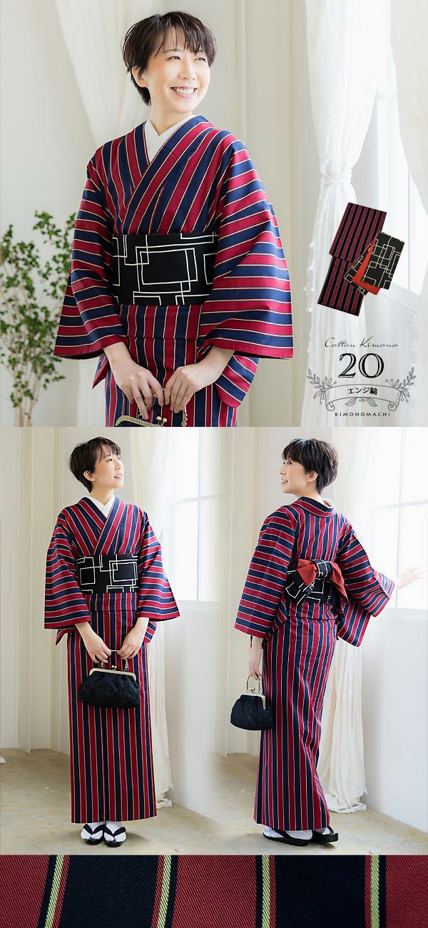 毎日のように着物を着る上級者さんにも、初めて着物を着るという初心者さんにも人気のKIMONOMACHIオリジナルの木綿着物と木綿の半幅帯の2点着物セットです。