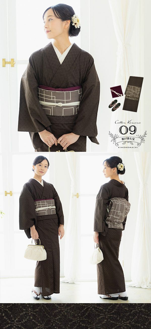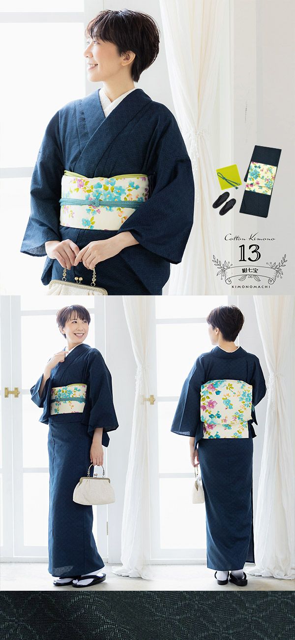 木綿着物は多少汚してもお家で洗えるから、カフェやお買い物なんかのちょっとしたお出かけにぴったり。