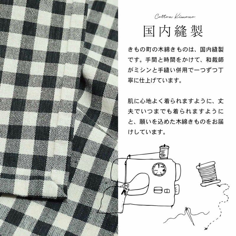 きもの町の木綿きものは、国内縫製です。