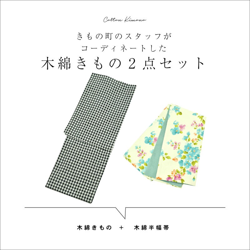 【商品内容】木綿着物+木綿半幅帯の2点セット