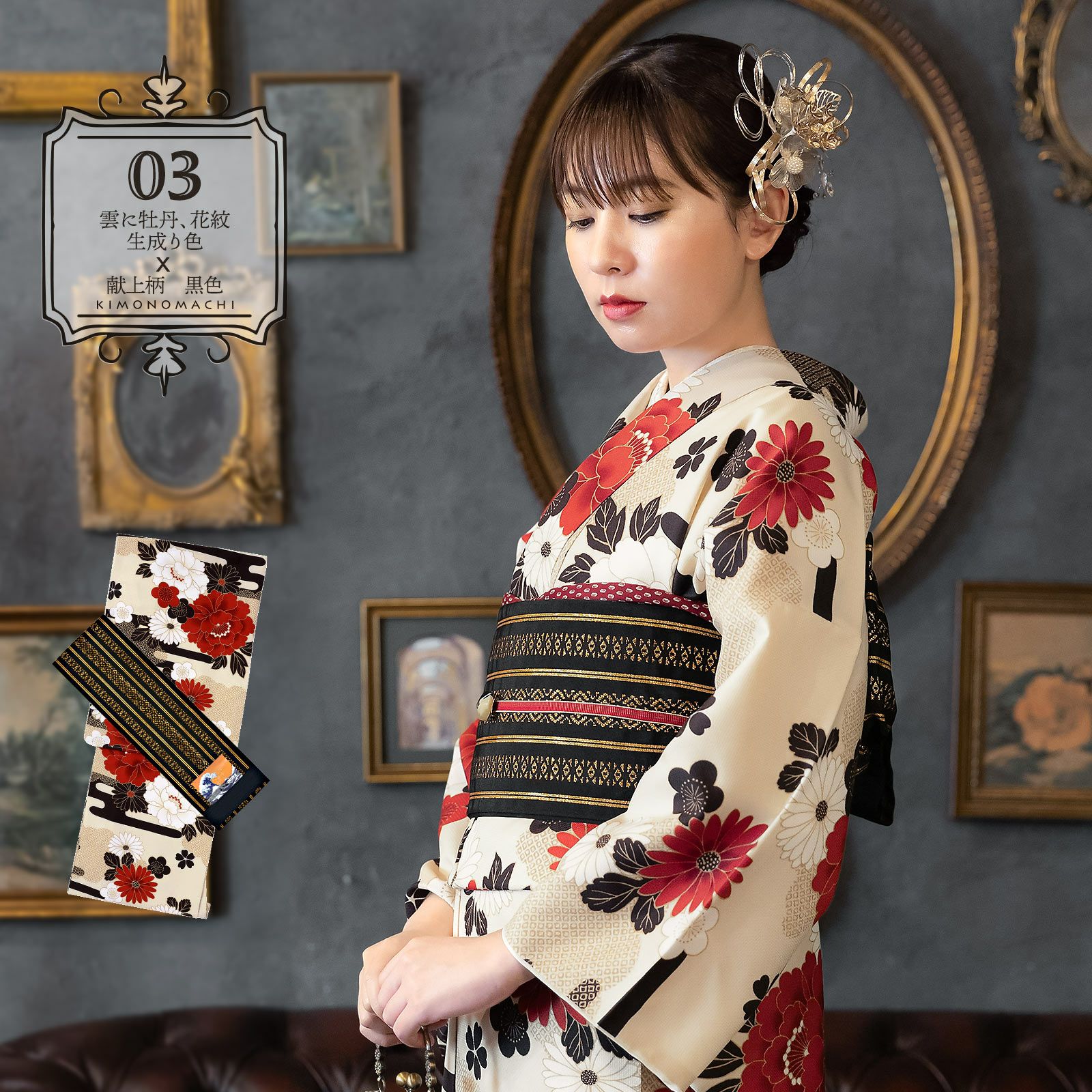 他の画像を見る 送料無料 KIMONOMACHI オリジナル!きもの福袋 個性派洗える着物 レトロモダン 古典柄 アンティーク着物風 洗える着物 セット「袷着物:雲に牡丹、花紋 生成り色+京袋帯:黒トランプ」KIMONOMACHI オリジナル きもの福袋 サイズS/M/L/LL 2025-2026新作 コーディネート済み着物セット 小紋 レディース キモノ【メール便不可】 きもの町価格 ¥ 23,100 税込 カートに入れる お気に入りに登録する