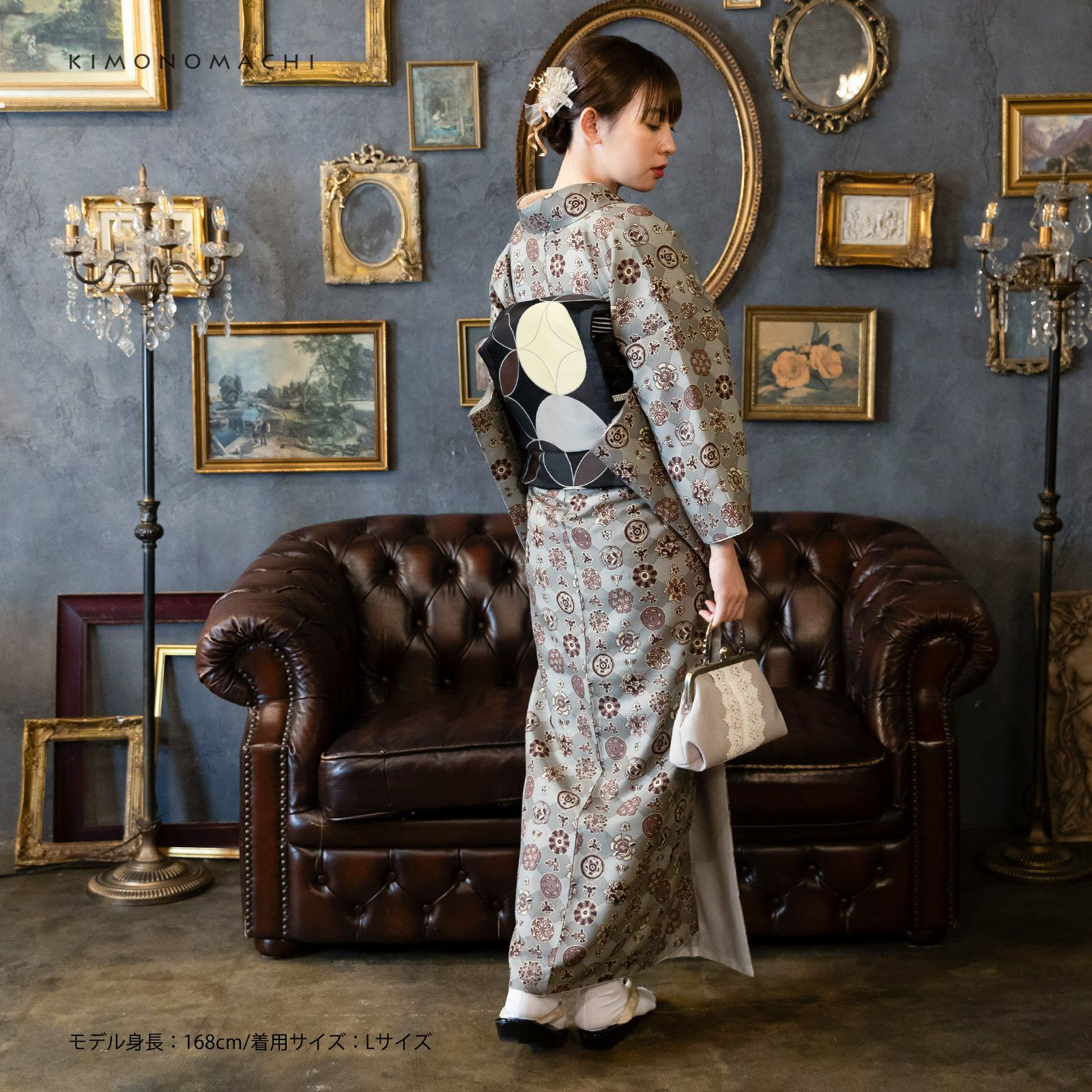 他の画像を見る 送料無料 KIMONOMACHI オリジナル!きもの福袋 個性派洗える着物 レトロモダン 古典柄 アンティーク着物風 洗える着物 セット「袷着物:丸花更紗に菱 灰釉色+京袋帯:月七宝」KIMONOMACHI オリジナル 着物と帯の2点セット サイズS/M/L/LL コーディネート済み着物セット 小紋 レディース キモノ【メール便不可】 きもの町価格 ¥ 23,100 税込 カートに入れる お気に入りに登録する