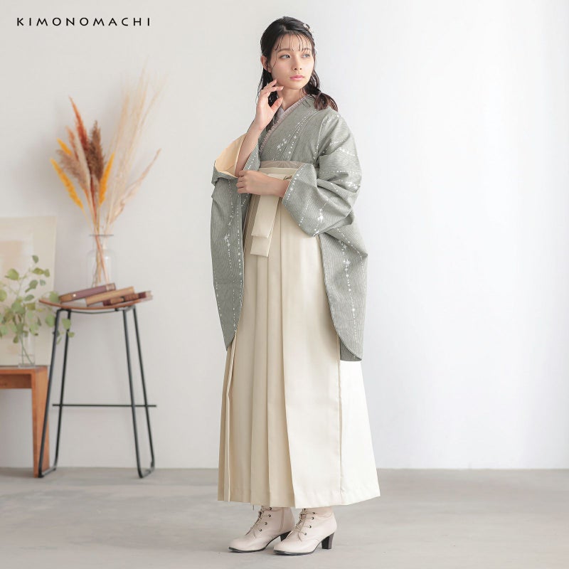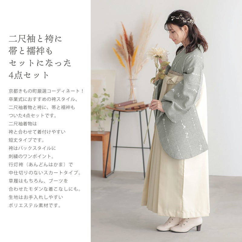 京都きもの町厳選コーディネート!卒業式におすすめのスタイル、二尺袖着物と袴に、帯と襦袢もついた4点セットです。