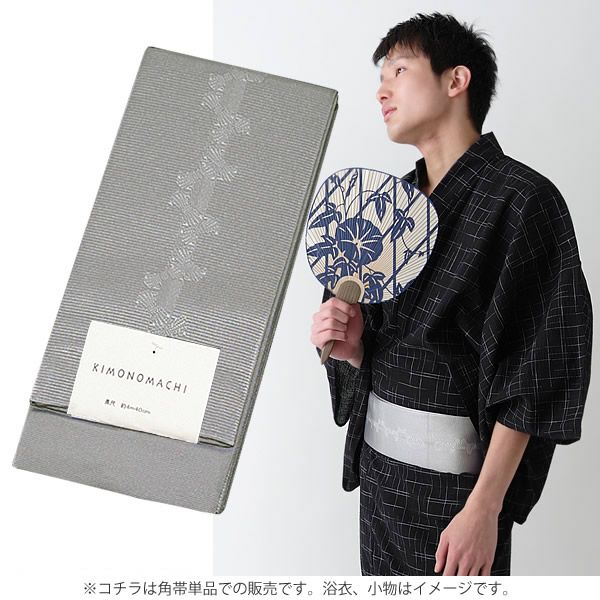 6. 長尺京都きもの町オリジナル角帯単品「鼠色 束ね熨斗」4.4m メンズ浴衣帯 ロングタイプ 小袋帯 【メール便不可】ss2206men10