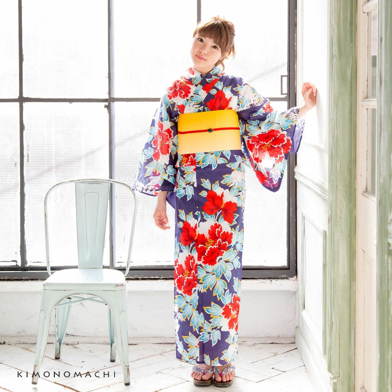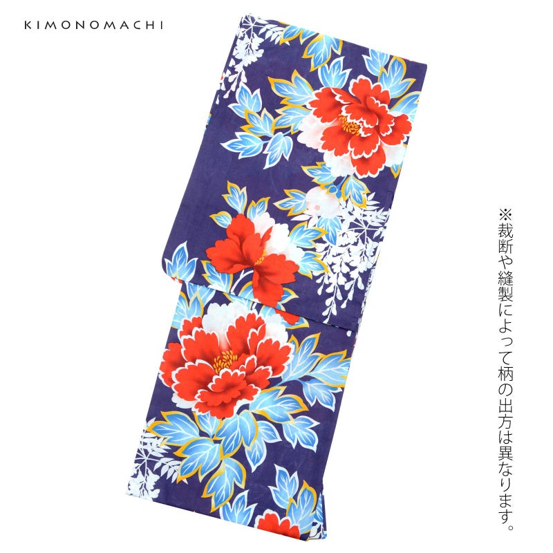 3. 京都きもの町オリジナル浴衣単品「紺色牡丹」フリーサイズ 綿浴衣 お仕立て上がり浴衣 レディース 女性用 女性浴衣 ゆかた yukata【メール便不可】ss2512ykl10