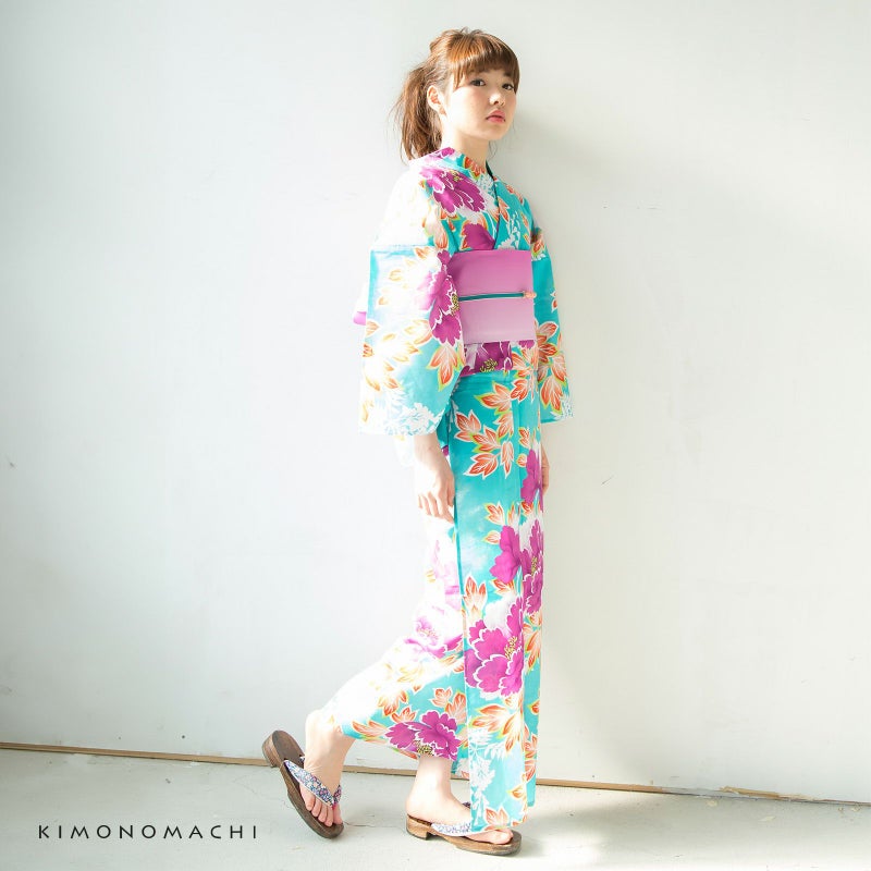 京都きもの町オリジナル浴衣単品 花火大会、夏デートに 京都きもの町オリジナル浴衣単品「水色牡丹」フリーサイズ 綿浴衣 お仕立て上がり浴衣 レディース 女性用 女性浴衣 ゆかた yukata【メール便不可】ss2512ykl10