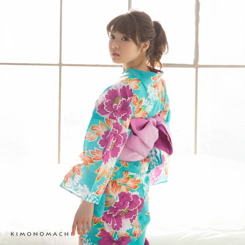 3. 京都きもの町オリジナル浴衣単品「水色牡丹」フリーサイズ 綿浴衣 お仕立て上がり浴衣 レディース 女性用 女性浴衣 ゆかた yukata【メール便不可】ss2512ykl10