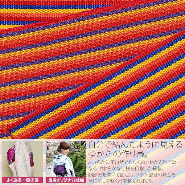 作り帯 京都きもの町オリジナル 浴衣帯 【Prices down】リボンタイプ 結び帯単品「赤×ネイビー縞」京都きもの町オリジナル 浴衣帯 作り帯 付け帯 【メール便不可】ss2512oyk10