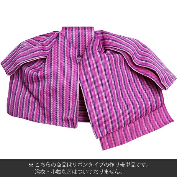 5. 【Prices down】リボンタイプ 結び帯単品「パープル縞」京都きもの町オリジナル 浴衣帯 作り帯 付け帯 【メール便不可】ss2512oyk10