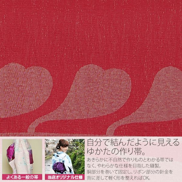 作り帯 京都きもの町オリジナル 浴衣帯 リボンタイプ 結び帯単品「レッド リーフ」京都きもの町オリジナル 浴衣帯 作り帯 付け帯 【メール便不可】