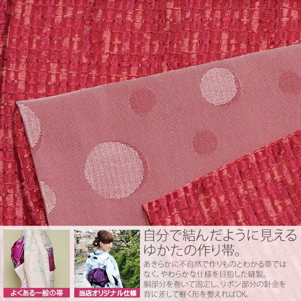作り帯 京都きもの町オリジナル 浴衣帯 リボンタイプ 結び帯単品「ラズベリー レース」京都きもの町オリジナル 浴衣帯 作り帯 付け帯 【メール便不可】