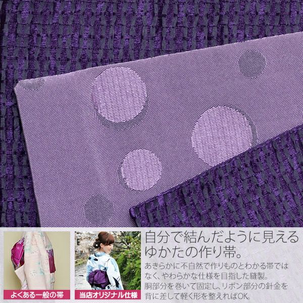 5. リボンタイプ 結び帯単品「パープル レース」京都きもの町オリジナル 浴衣帯 作り帯 付け帯 【メール便不可】