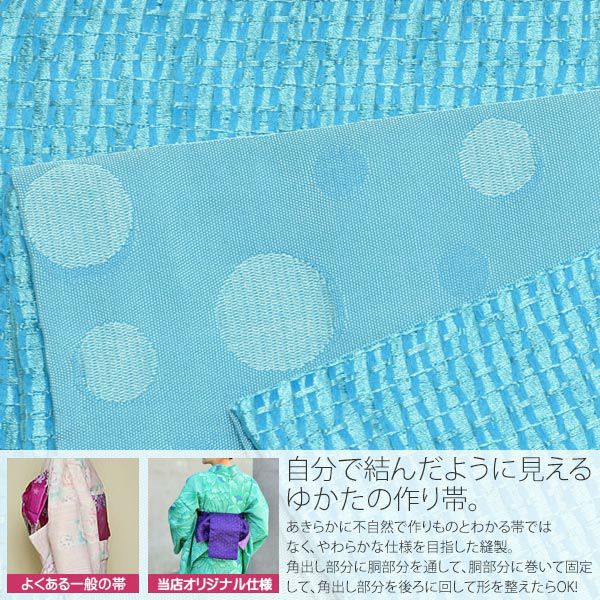 5. 角出し風タイプ 結び帯単品「ターコイズ レース」京都きもの町オリジナル 浴衣帯 作り帯 付け帯 【メール便不可】