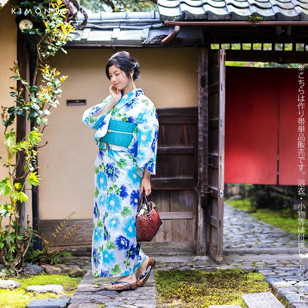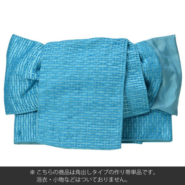 作り帯 京都きもの町オリジナル 浴衣帯 角出し風タイプ 結び帯単品「ターコイズ レース」京都きもの町オリジナル 浴衣帯 作り帯 付け帯 【メール便不可】