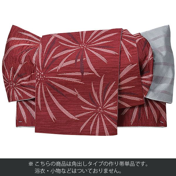 作り帯 京都きもの町オリジナル 浴衣帯 角出し風タイプ 結び帯単品「赤紅色 花火」京都きもの町オリジナル 浴衣帯 作り帯 付け帯 【メール便不可】