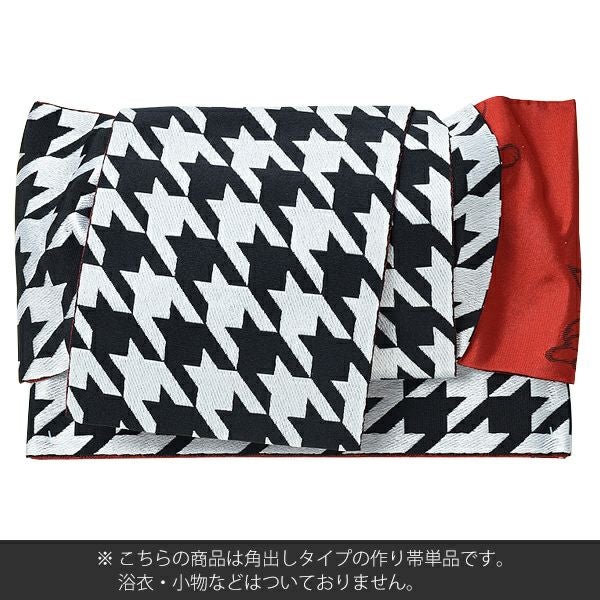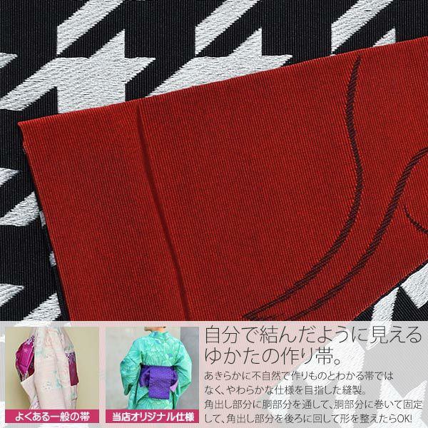 作り帯 京都きもの町オリジナル 浴衣帯 角出し風タイプ 結び帯単品「黒×白 千鳥」京都きもの町オリジナル 浴衣帯 作り帯 付け帯 【メール便不可】
