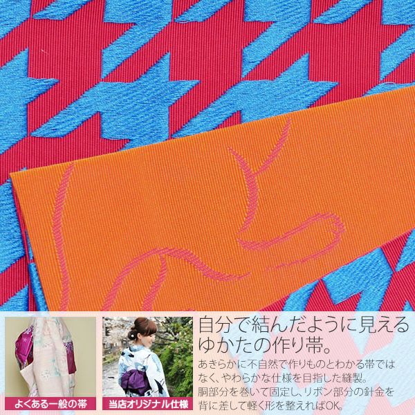 作り帯 京都きもの町オリジナル 浴衣帯 【Prices down】リボンタイプ 結び帯単品「桃×青 千鳥」京都きもの町オリジナル 浴衣帯 作り帯 付け帯 【メール便不可】ss2406ohs45