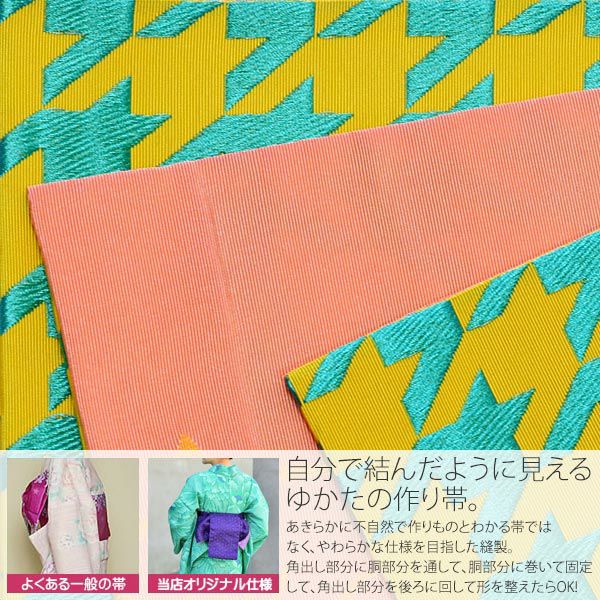 3. 【Prices down】角出し風タイプ 結び帯単品「黄×青緑 千鳥」京都きもの町オリジナル 浴衣帯 作り帯 付け帯 【メール便不可】ss2512oyk10