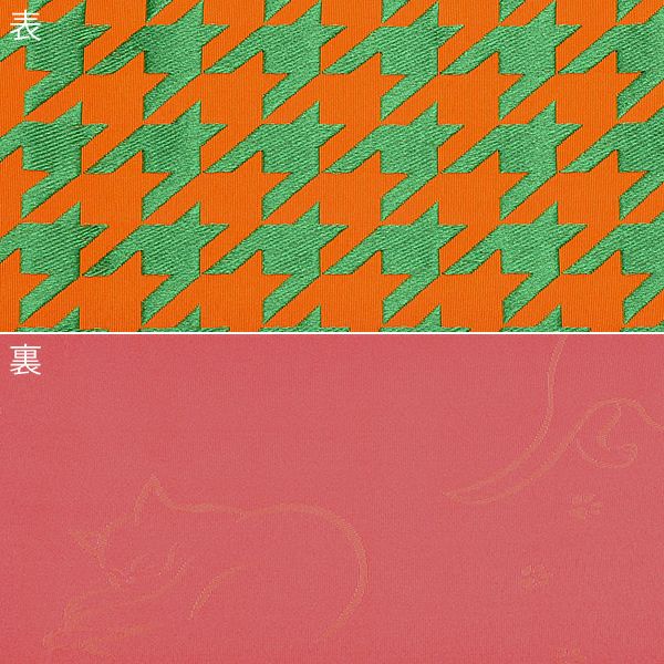 【Prices down2】京都きもの町オリジナル浴衣帯単品「千鳥 橙×緑」小袋帯 半幅帯 ポリエステル ゆかた帯 四寸 <16浴衣帯15>【メール便不可】ss2512oyk70