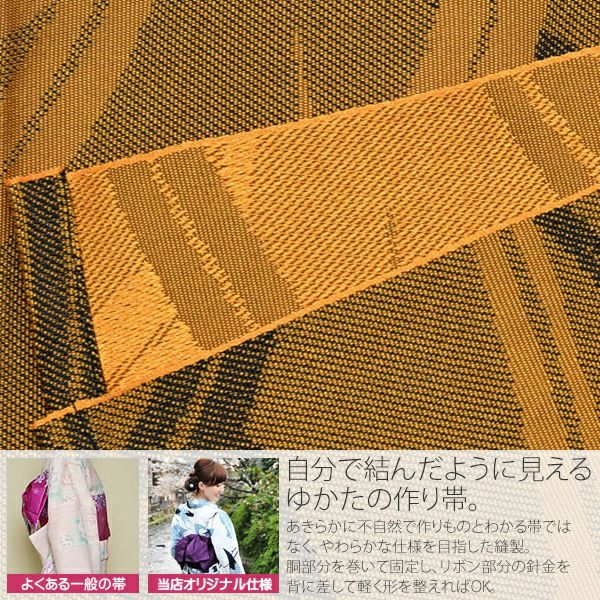 作り帯 京都きもの町オリジナル 浴衣帯 【Prices down】リボンタイプ 結び帯単品「山吹色 露芝」京都きもの町オリジナル 浴衣帯 作り帯 付け帯 【メール便不可】