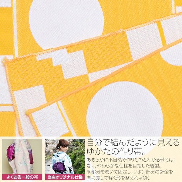 3. リボンタイプ 結び帯単品「黄色 幾何学」京都きもの町オリジナル 浴衣帯 作り帯 付け帯 【メール便不可】