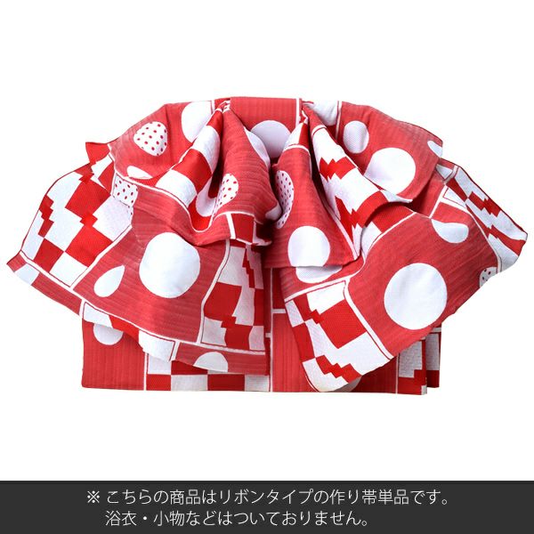 6. 【Prices down】リボンタイプ 結び帯単品「赤色 幾何学」京都きもの町オリジナル 浴衣帯 作り帯 付け帯 【メール便不可】