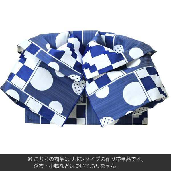 5. リボンタイプ 結び帯単品「青色 幾何学」京都きもの町オリジナル 浴衣帯 作り帯 付け帯 【メール便不可】ss2406ohs60