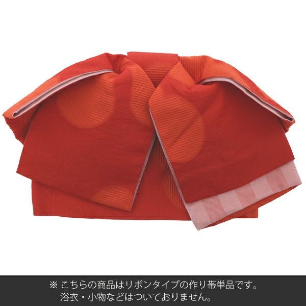 3. リボンタイプ 結び帯単品「オレンジレッド カタバミ」京都きもの町オリジナル 浴衣帯 作り帯 付け帯 【メール便不可】