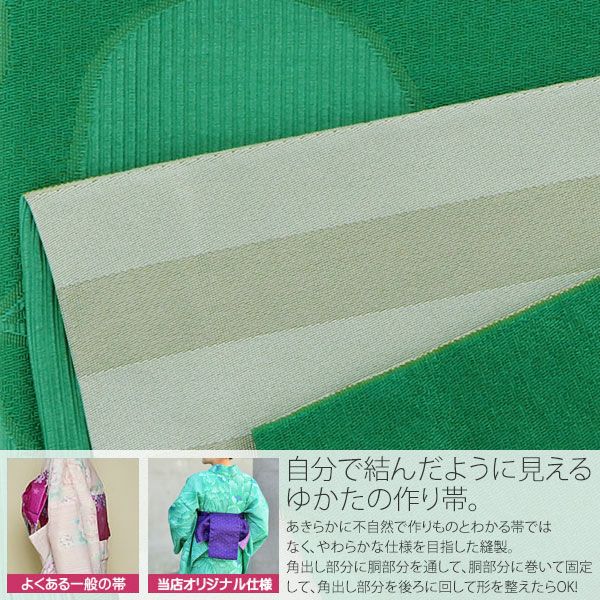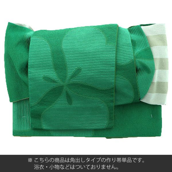 3. 角出し風タイプ 結び帯単品「グリーン カタバミ」京都きもの町オリジナル 浴衣帯 作り帯 付け帯 【メール便不可】
