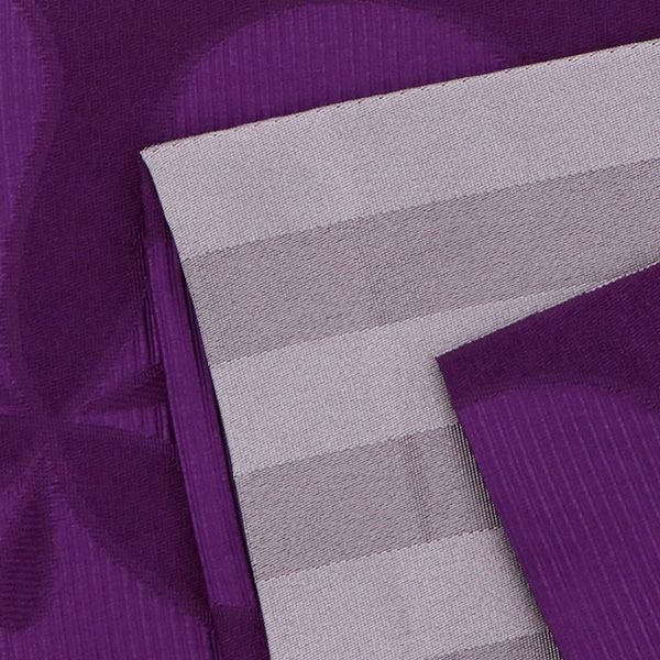 【カラー】少し重めの濃い紫色。ハート型を三枚合わせたようなカタバミモチーフの模様。裏は、くすんだ藤色の縞模様。