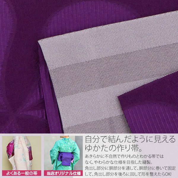 5. 角出し風タイプ 結び帯単品「バイオレット カタバミ」京都きもの町オリジナル 浴衣帯 作り帯 付け帯 【メール便不可】