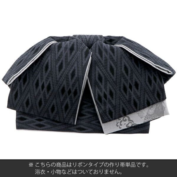 3. リボンタイプ 結び帯単品「黒色 菱格子」京都きもの町オリジナル 浴衣帯 作り帯 付け帯 【メール便不可】