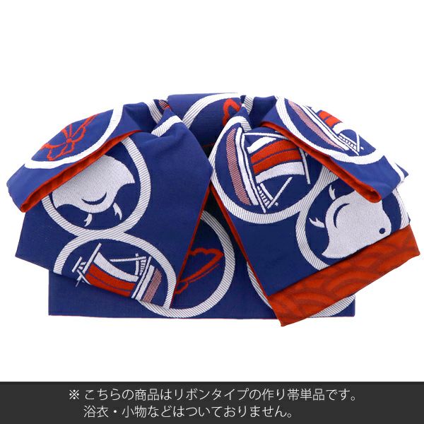 5. 【Prices down】リボンタイプ 結び帯単品「紺色 丸紋」京都きもの町オリジナル 浴衣帯 作り帯 付け帯 【メール便不可】ss2303ohs20