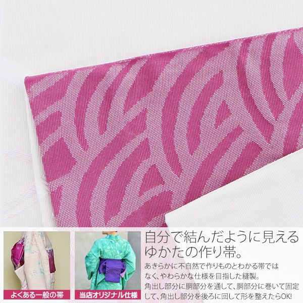 京都きもの町オリジナルの浴衣帯です。こちらの浴衣帯は作り帯ですので、着付けが楽ちんです。
