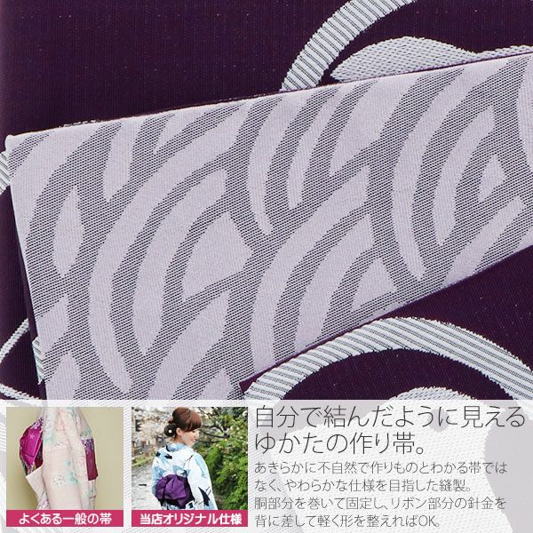 作り帯 京都きもの町オリジナル 浴衣帯 【Prices down】リボンタイプ 結び帯単品「紫色 丸紋」京都きもの町オリジナル 浴衣帯 作り帯 付け帯 【メール便不可】ss2406ohs10