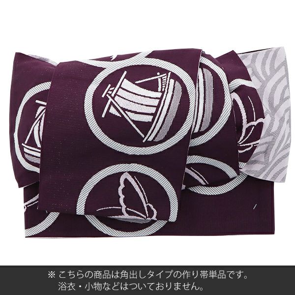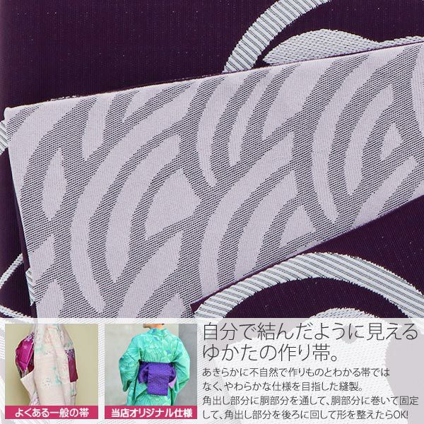 6. 【Prices down】角出し風タイプ 結び帯単品「紫色 丸紋」京都きもの町オリジナル 浴衣帯 作り帯 付け帯 【メール便不可】