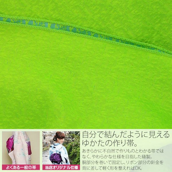 作り帯 京都きもの町オリジナル 浴衣帯 【Prices down】リボンタイプ 結び帯単品「グリーン 無地」京都きもの町オリジナル 浴衣帯 作り帯 付け帯 【メール便不可】ss2512oyk10