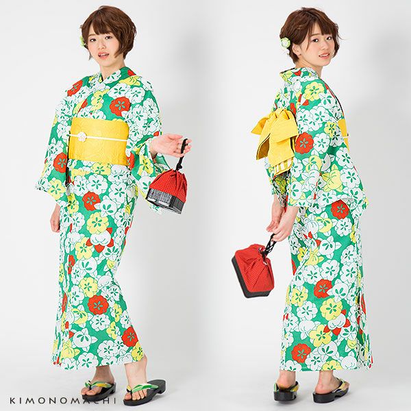 3. 【Prices down2】京都きもの町オリジナル浴衣単品「グリーン 梅と橘」フリーサイズ 女性浴衣 花火大会、夏祭り、夏フェスに お仕立て上がり浴衣 浴衣 【メール便不可】ss2506ykl10