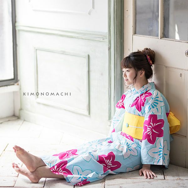 京都きもの町オリジナル浴衣と浴衣帯の2点セット 花火大会、夏デートに 【Prices down2】京都きもの町オリジナル浴衣セット「水色 鉄線」S、フリー、TL、LL 女性浴衣 お仕立て上がり浴衣 浴衣、帯の浴衣2点セット 【メール便不可】ss2512ykl15
