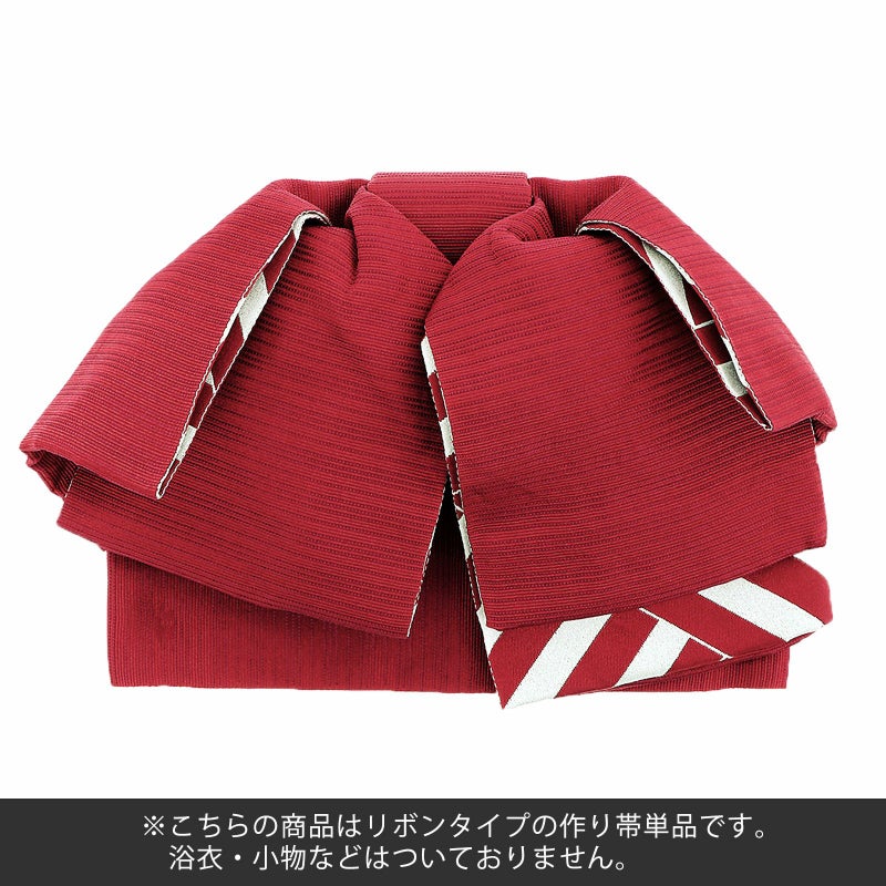 浴衣 作り帯 半幅帯 リボン風タイプ 結び帯単品「レッド 変わりストライプ 赤×白」 日本製 半巾帯 レディース 女性用 浴衣帯 作り帯単品 京都きもの町オリジナル 【メール便不可】