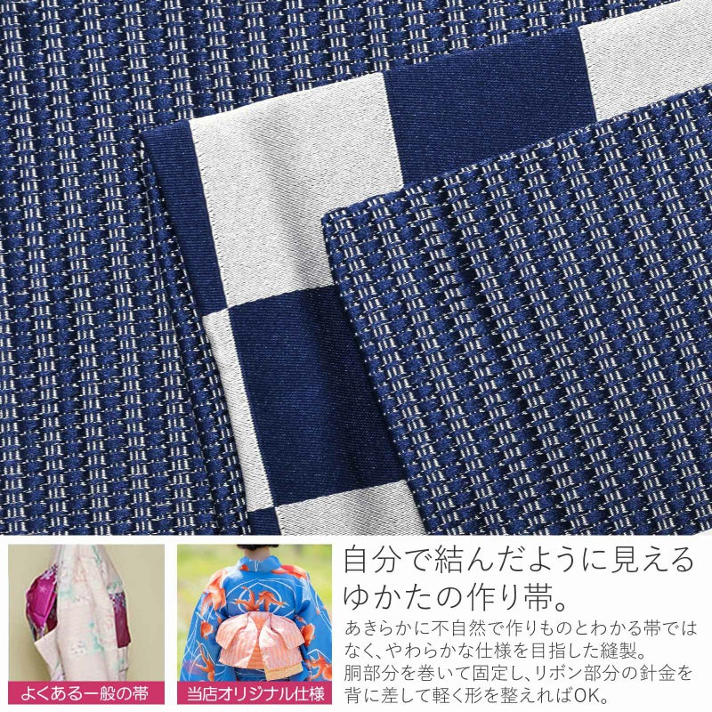 5. 【Prices down2】浴衣 作り帯 半幅帯 リボン風タイプ 結び帯単品「ネイビー 市松 紺×白」 日本製 半巾帯 レディース 女性用 浴衣帯 作り帯単品 京都きもの町オリジナル 【メール便不可】ss2506ohs10